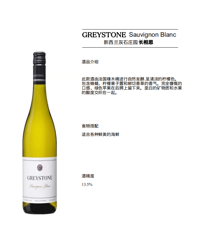灰石庄园有机认证白葡萄酒-长相思2019/2020 750ml