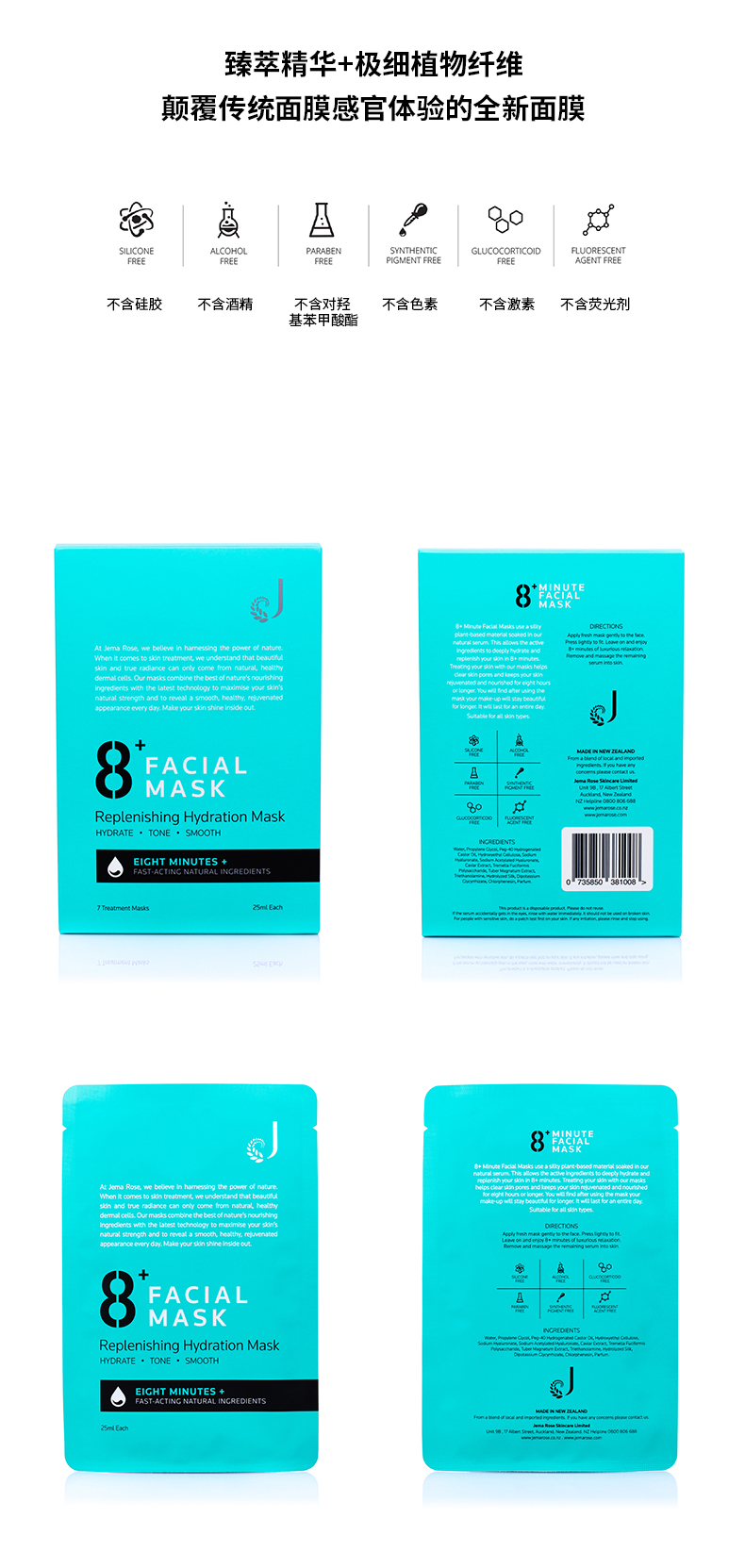 - 英文名称Jema Rose 8+ Replenishing Hydration Facial Mask 7 sheets