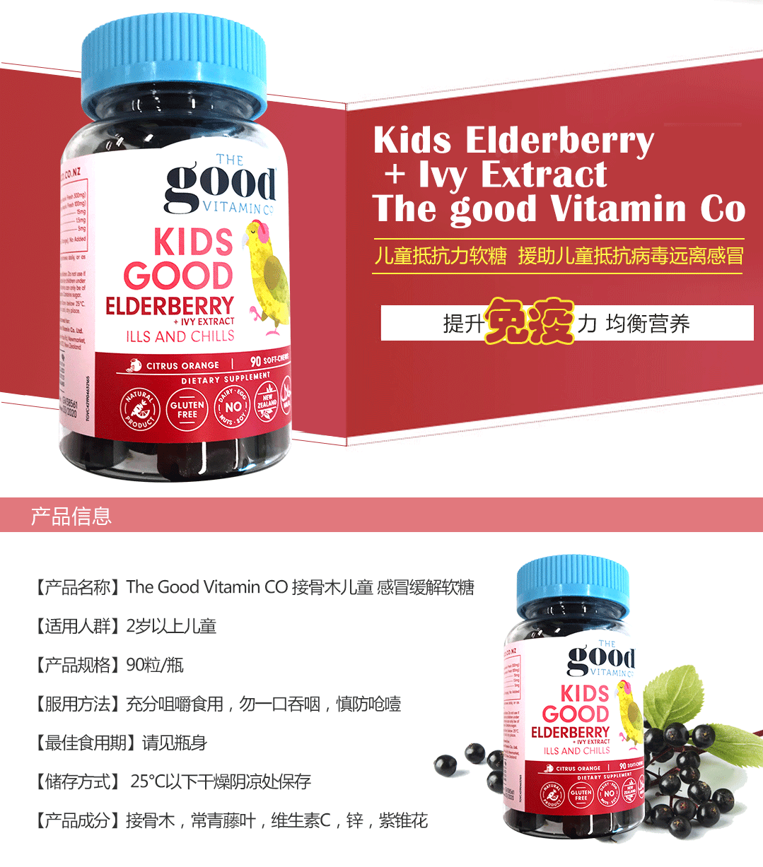 - 英文名称The good vitamin kids good elderberry 90c