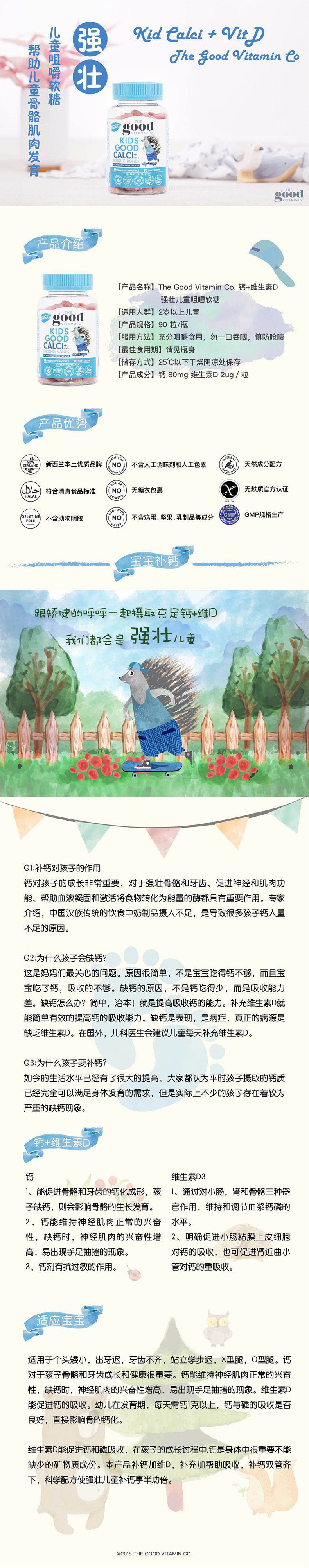 The Good Vitamin Co. 儿童钙+维D软糖 强壮骨骼 草莓味 90粒