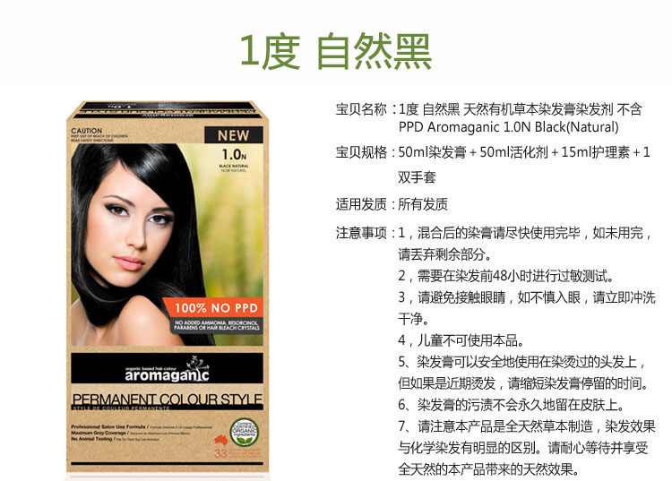 Aromaganic 1.0N 纯天然染发膏染发剂 1.0度 自然黑