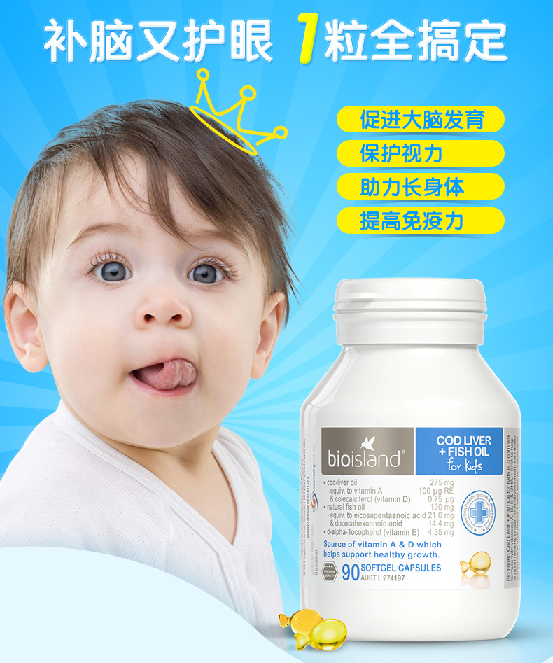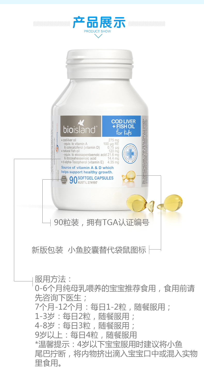 【产品名称】 BioIsland 儿童鳕鱼肝油 90粒