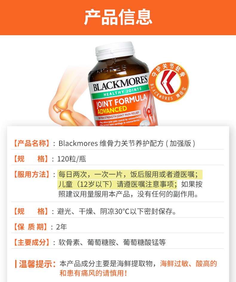 - 英文名称Blackmores Joint Formula Advanced 120t