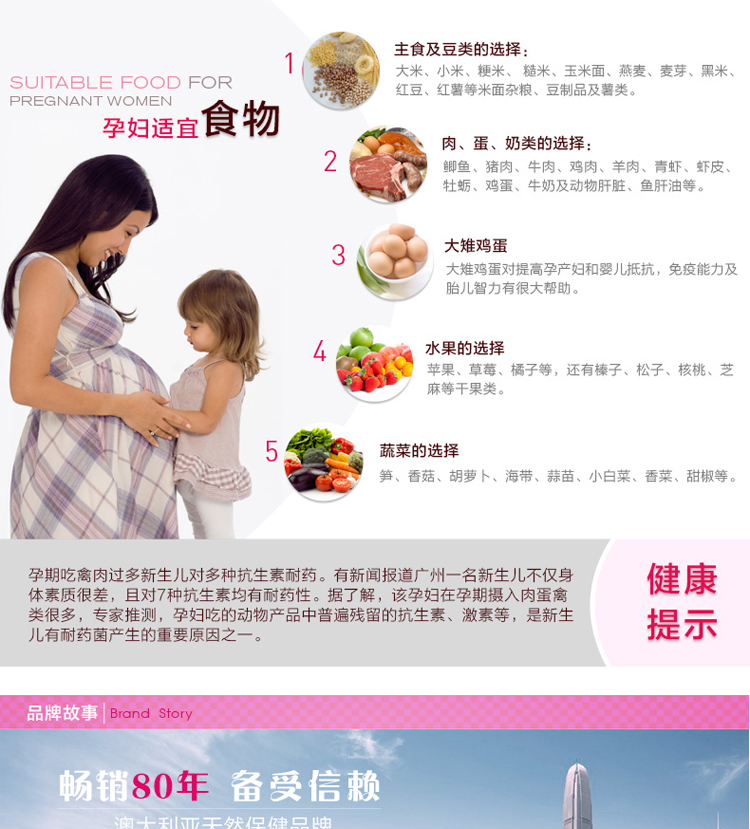 【产品功效】 富含多种营养素、帮助宝宝发育、调整妈妈体质、降低婴儿畸形率