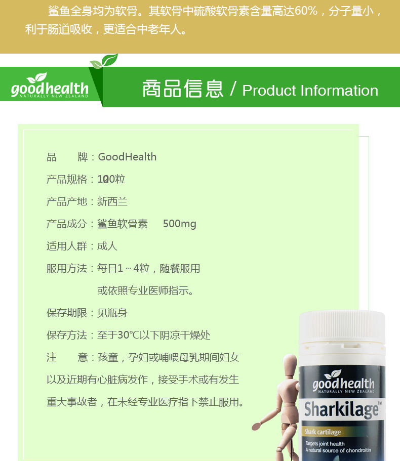 Good Health 好健康鲨鱼软骨胶囊 500mg 100粒