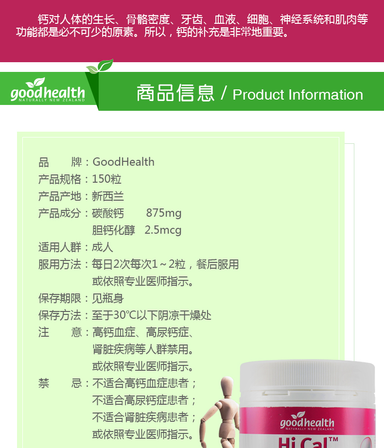 - 英文名称Good Health Hi Cal 1000mg 150s