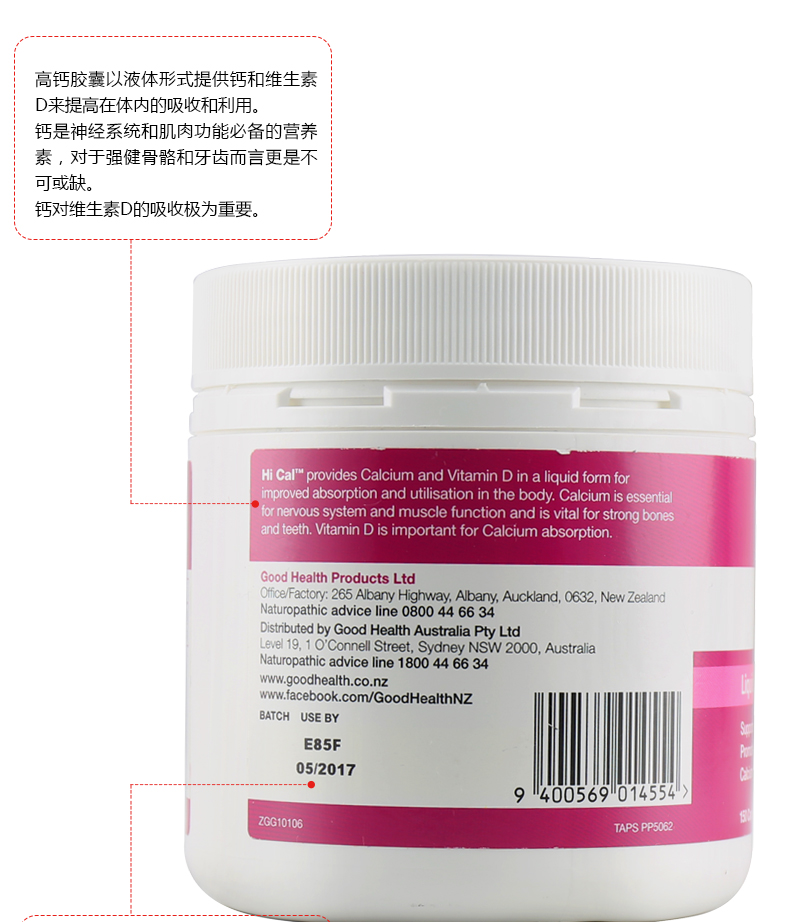 【产品名称】 GoodHealth 好健康 高钙 液体钙加VD150粒