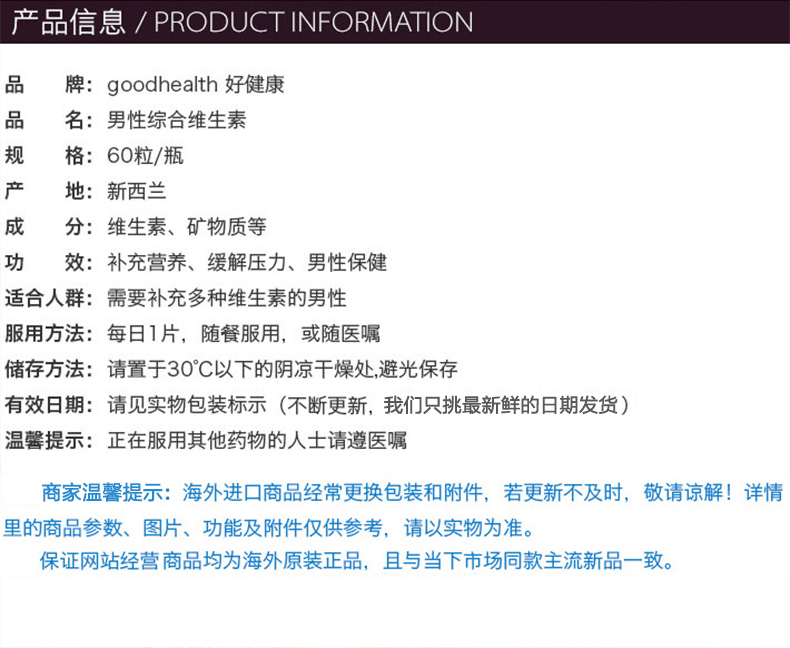 Good Health 好健康男性多种维生素 60粒