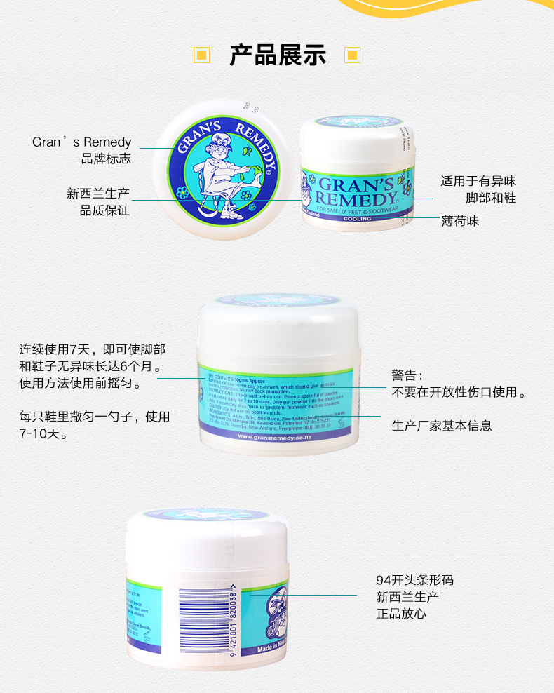- 英文名称Grans Remedy foot powder scented 50g