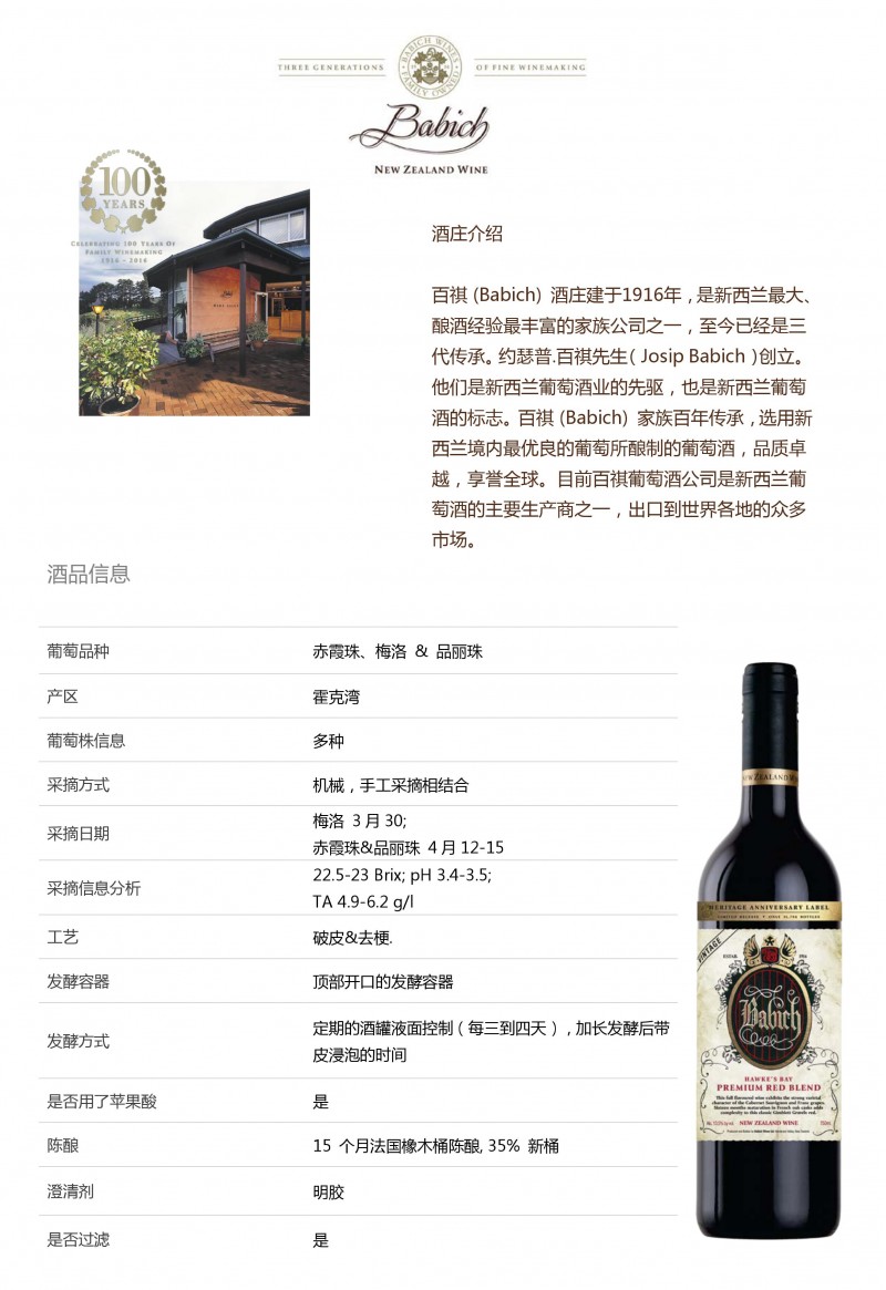 百祺复古高端红葡萄酒100年纪念版 750毫升 2瓶装