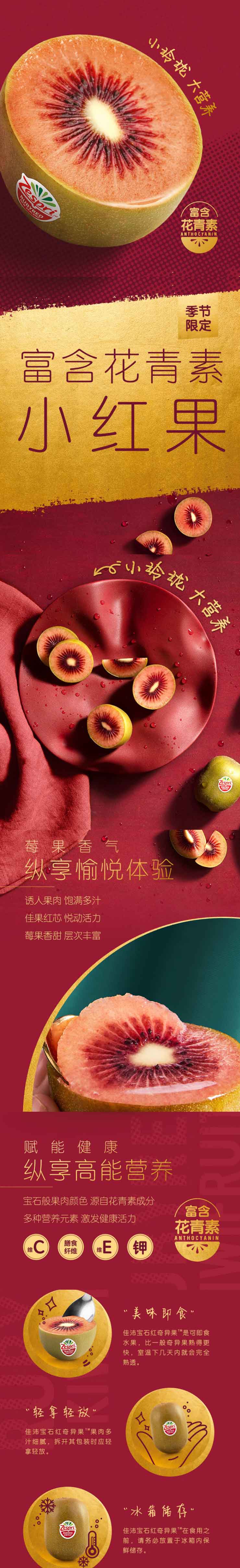 新西兰Zespri红心奇异果 单果重约90-100g 4个/盒 * 4盒
