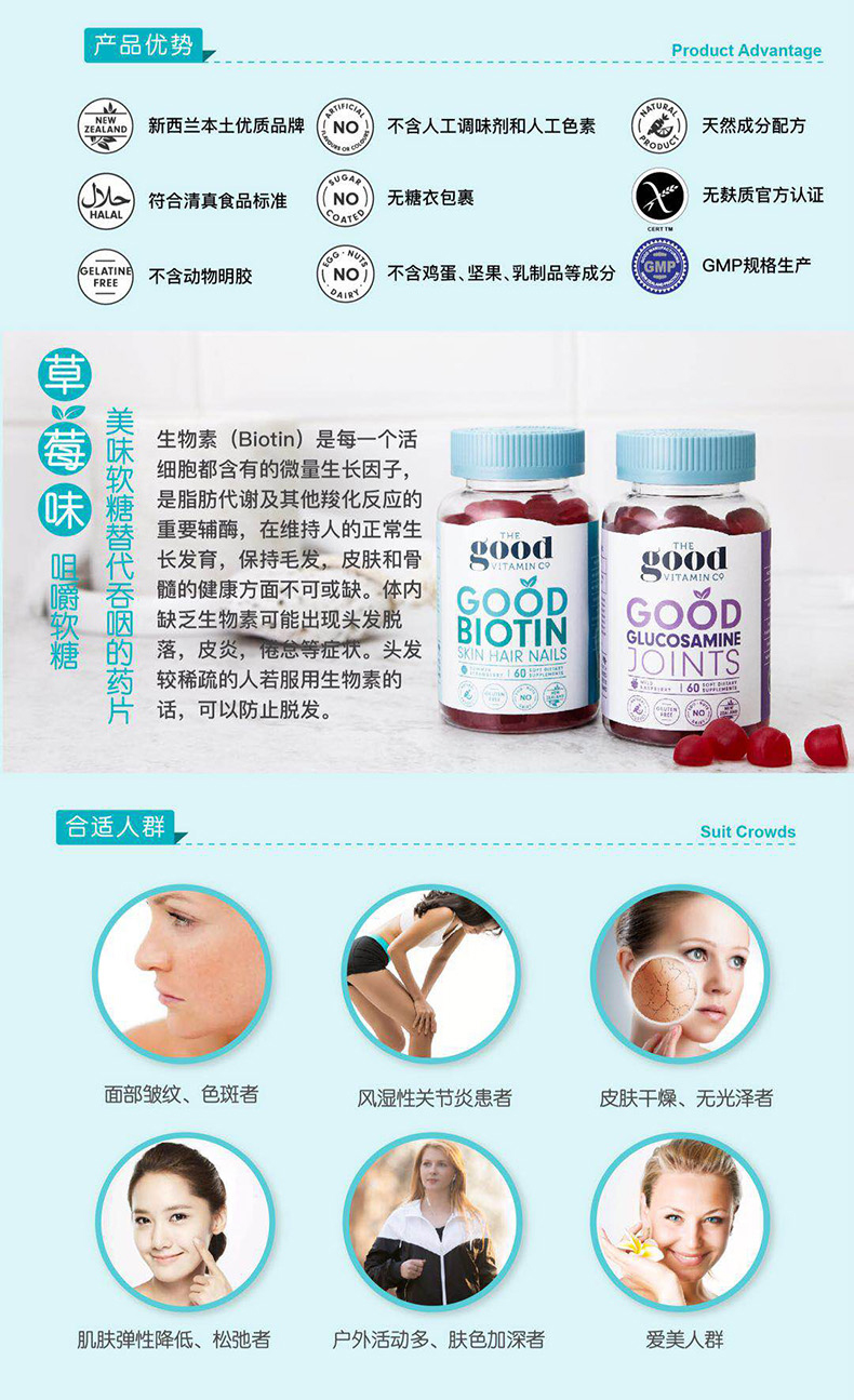 The Good Vitamin Co. 成人生物素胶原蛋白软糖 60粒