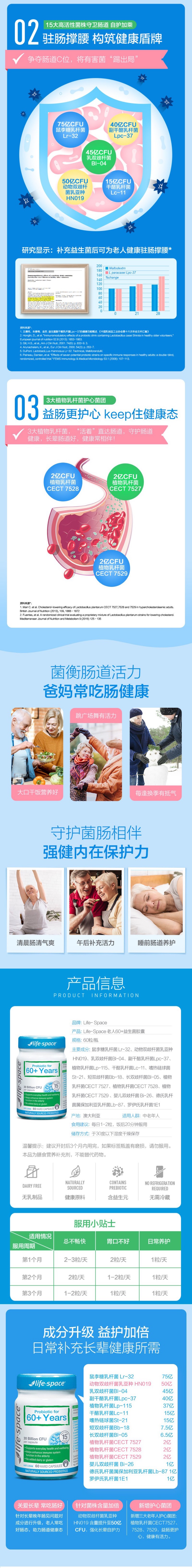 LifeSpace 老人益生菌粉末 60岁以上 60粒