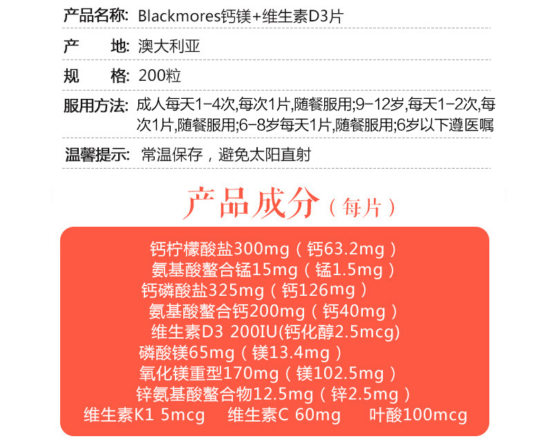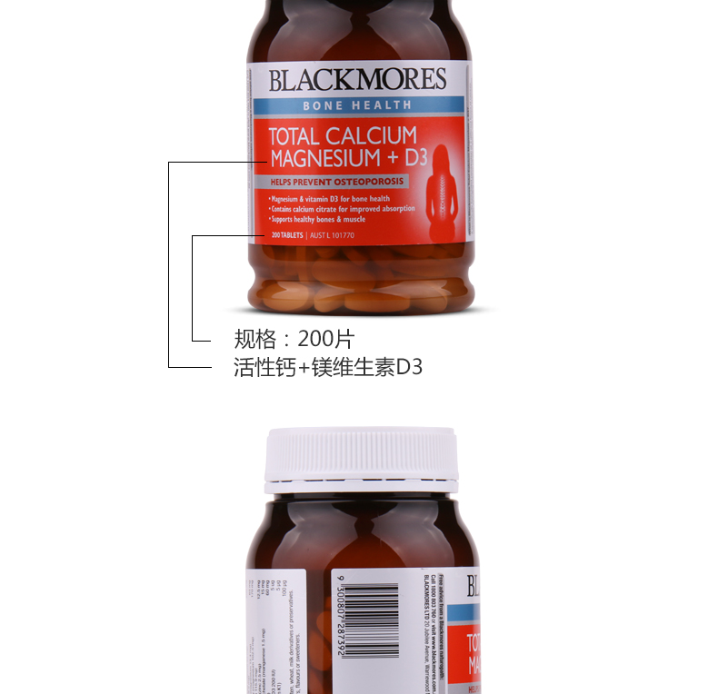 - 英文名称 Blackmores Total Calcium Magnesium+D3 200t T580