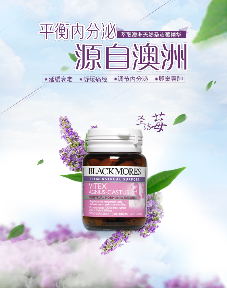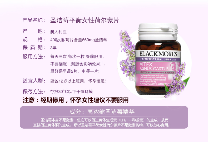 【产品名称】 Blackmores 圣洁莓 40粒 调节分泌黄体酮 调经荷尔蒙多囊
