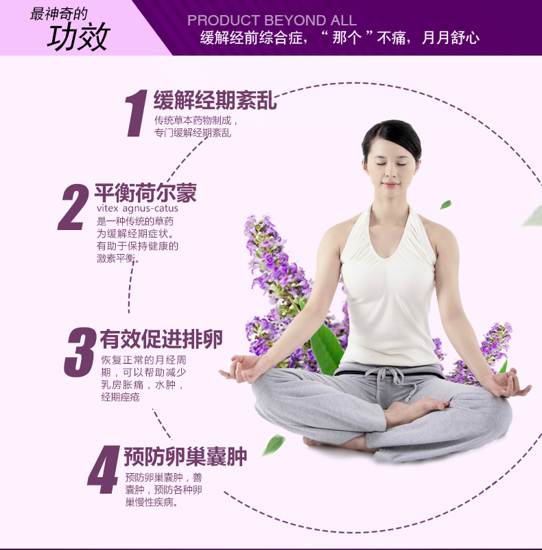 【产品功效】 缓解经前综合征、改善痛经、预防卵巢囊肿等