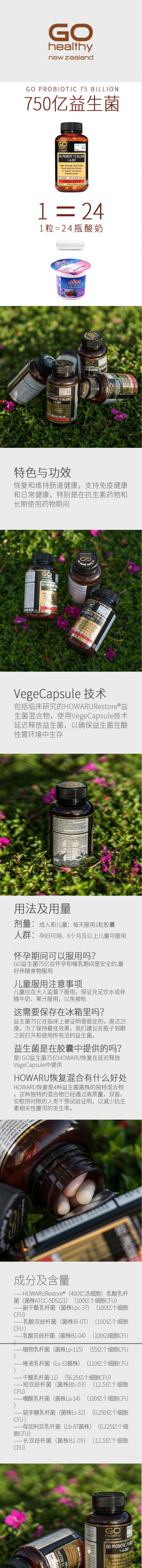 - 英文名称Go Healthy Go Probiotic 75 Billion 1-A-DAY 60c