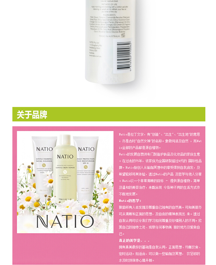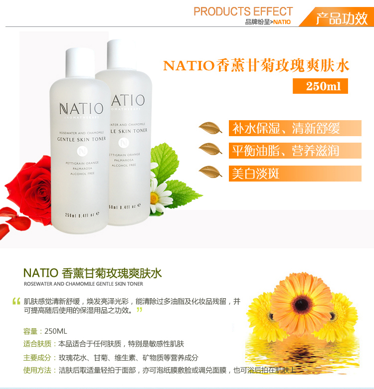 NATIO 澳洲娜迪奥香薰甘菊玫瑰爽肤水 250ml