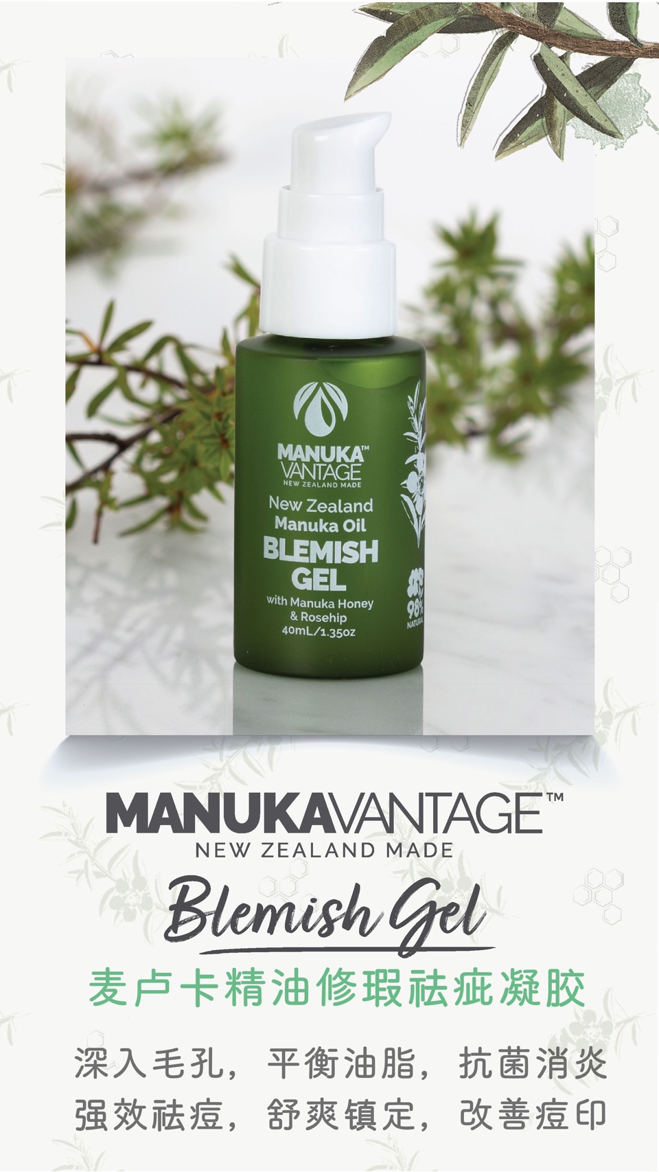 - 英文名称Parrs Manuka Vantage Manuka Oil Blemish Gel 40ml