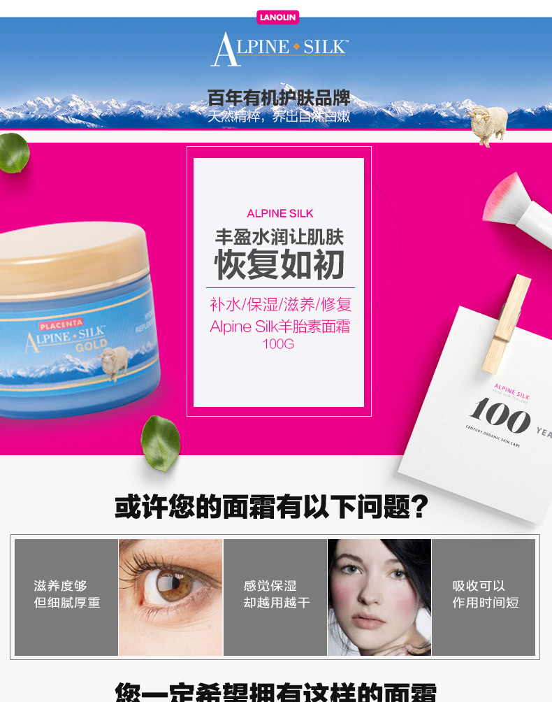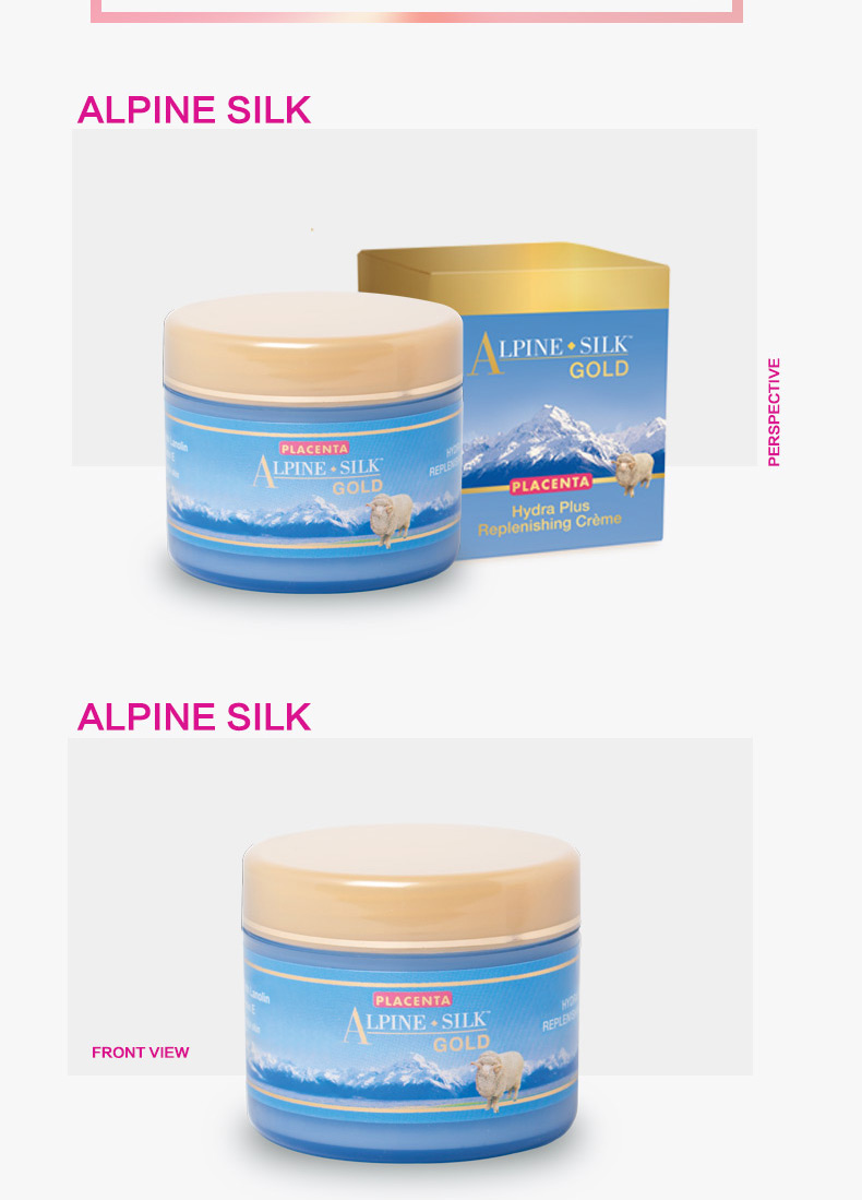 - 英文名称Alpine Silk Gold Placenta Hydra Plus Replenishing Creme 100g