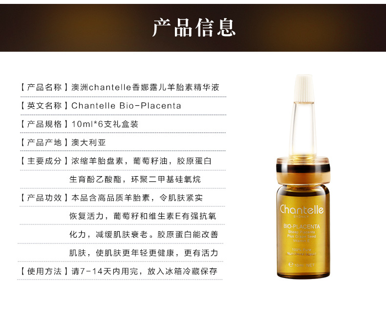 - 英文名称Chantelle Bio-Placenta Sheep Placenta Extract Plus Grape Seed Oil & Vitamin E