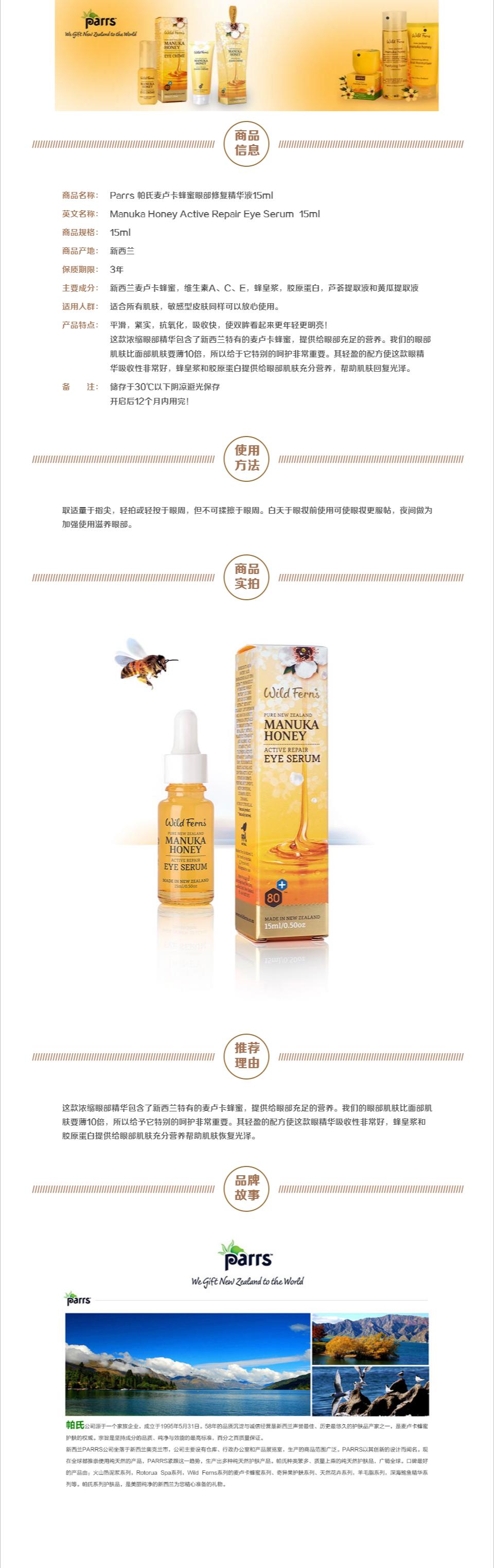 - 英文名称Parrs Manuka Honey Active Repair Eye Serum 15ml