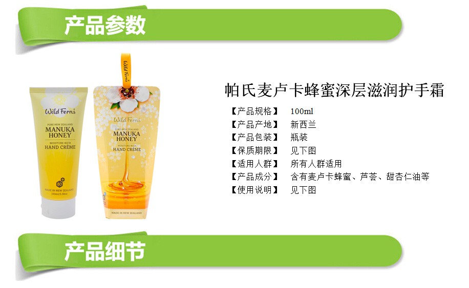 - 英文名称Parrs Manuka Honey Moisture Rich Hand Crème 100ml