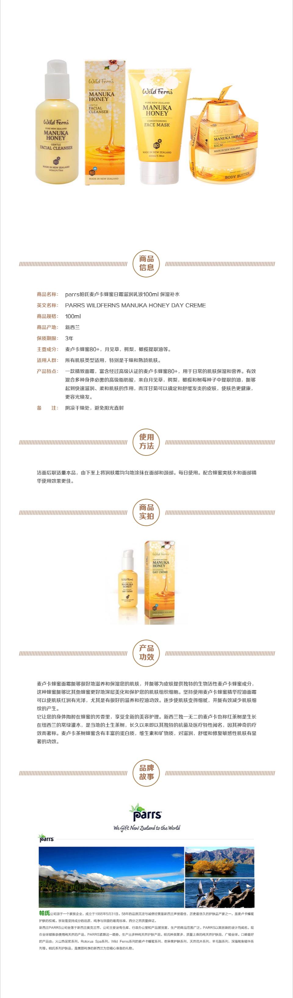 - 英文名称Parrs Manuka Honey Replenishing Day Cream 100ml