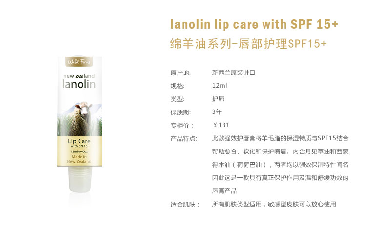 - 英文名称Parrs Lanolin Lip Care with SPF15 12ml