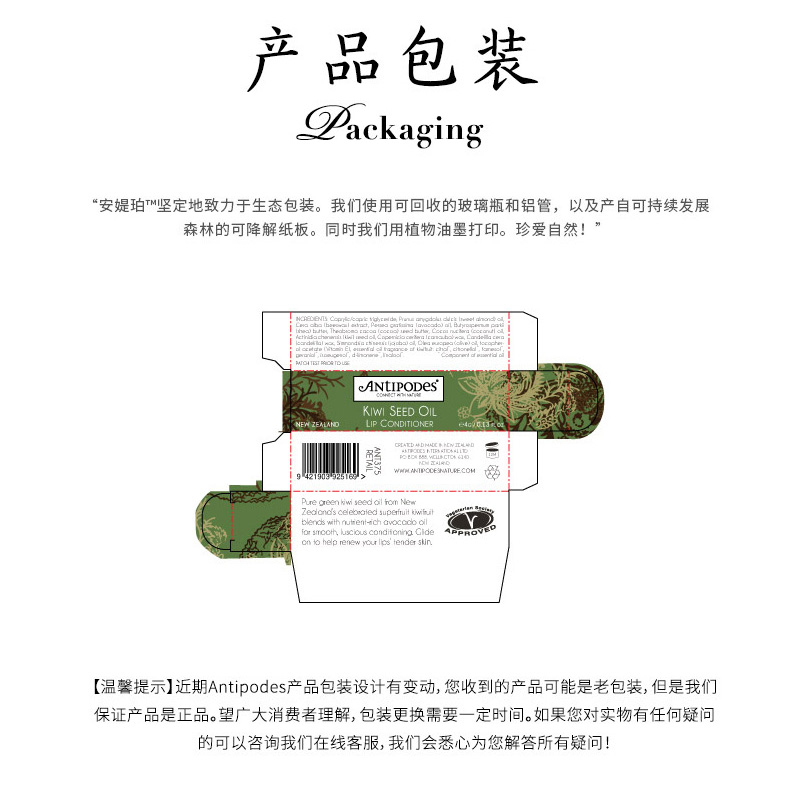 - 英文名称Antipodes Kiwi Seed Oil Lip Conditioner 4g