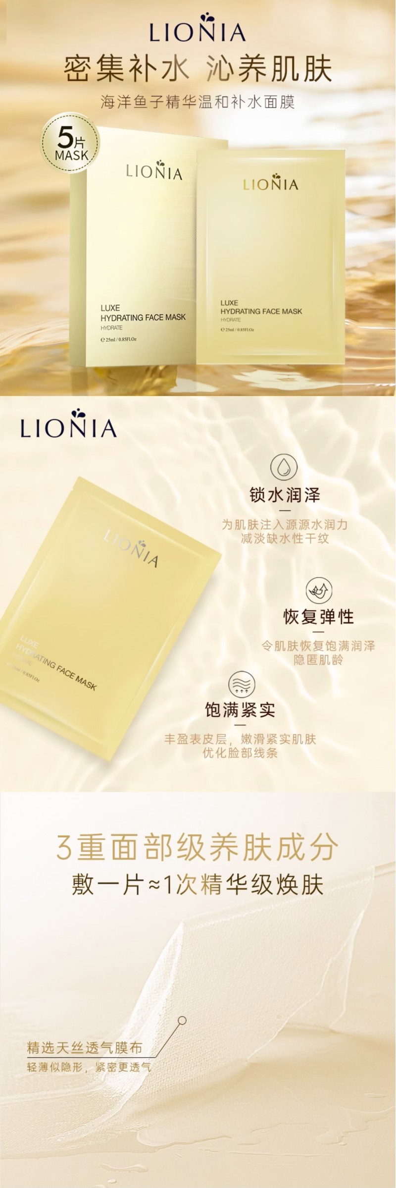 - 英文名称Lionia Luxe Hydrating Face Mask 25ml*5