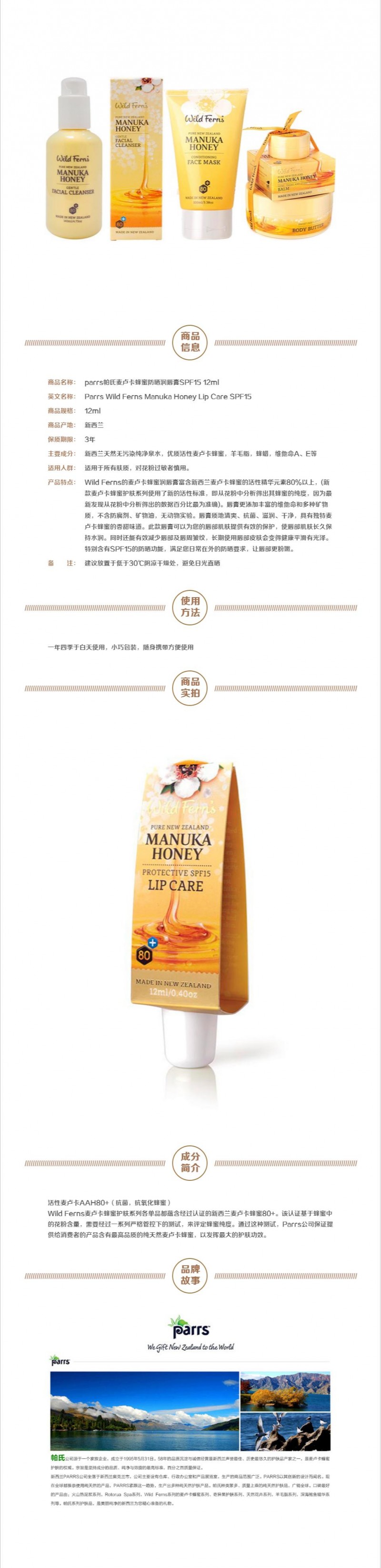 - 英文名称Parrs Manuka Honey SPF15 Lip care 12ml