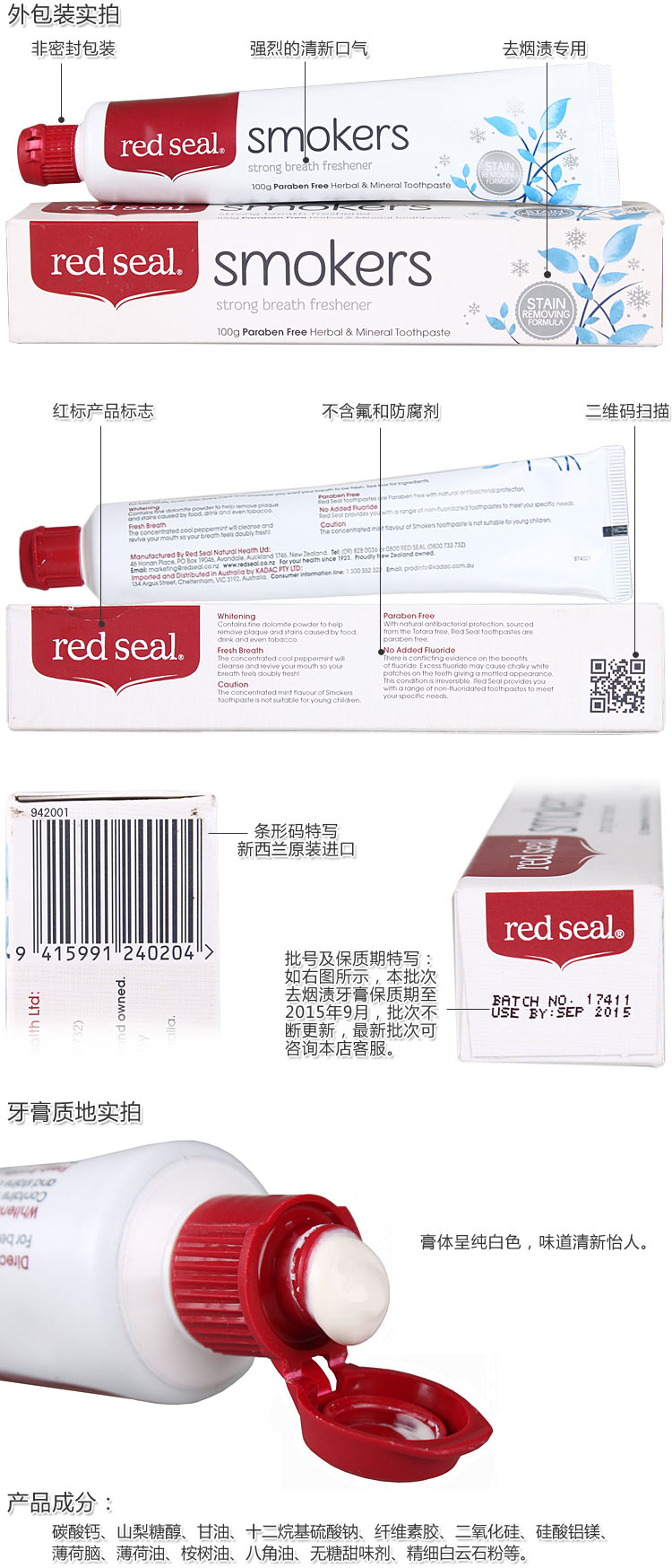 - 英文名称Red Seal Smoker Toothpaste 100g