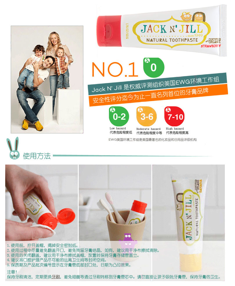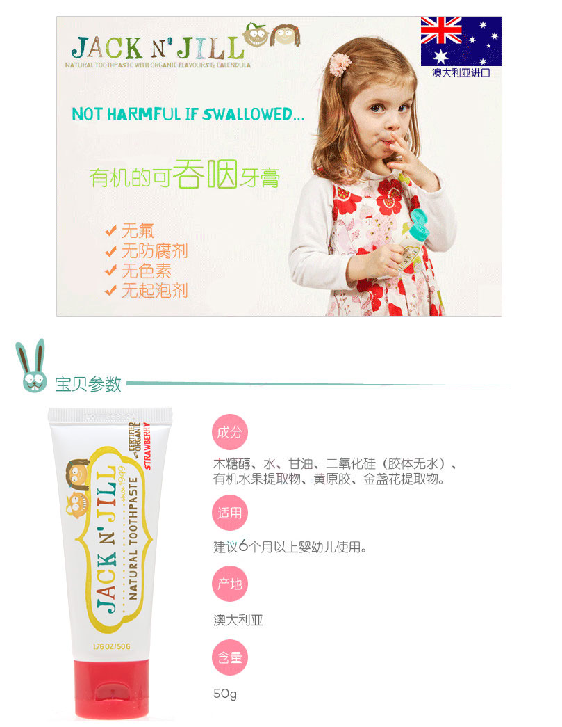 - 英文名称Jack & Jill Strawberry Toothpaste 50g