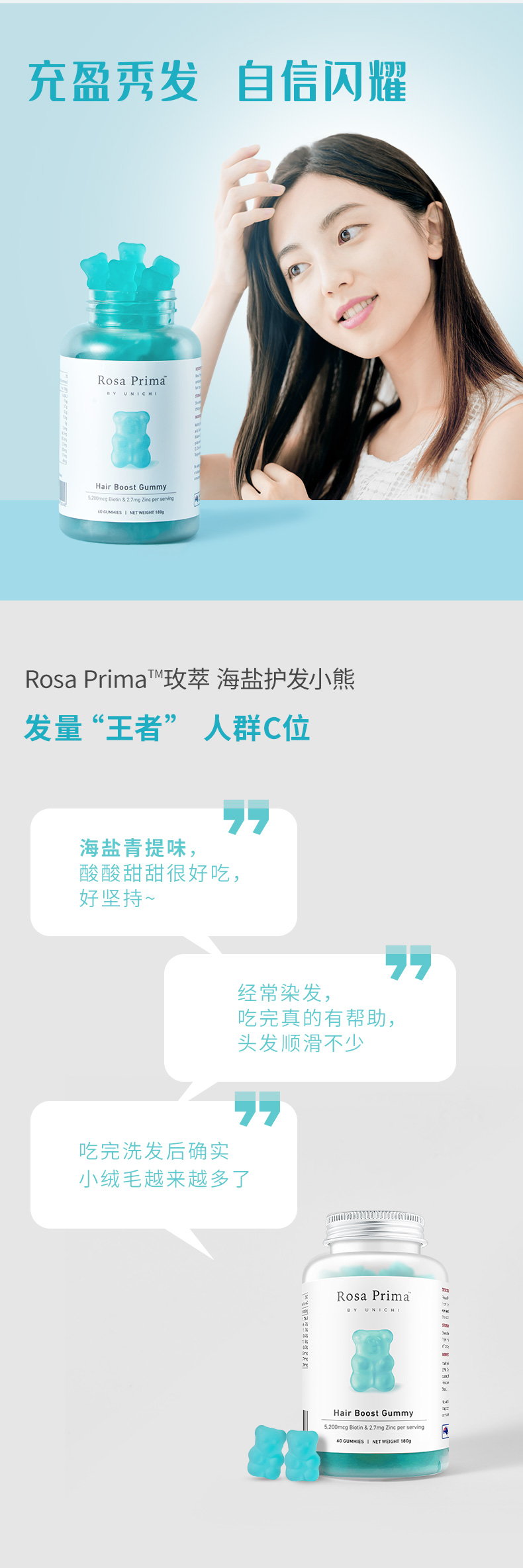 - 英文名称Unichi Rosa Prima Hair Boost Gummy 60