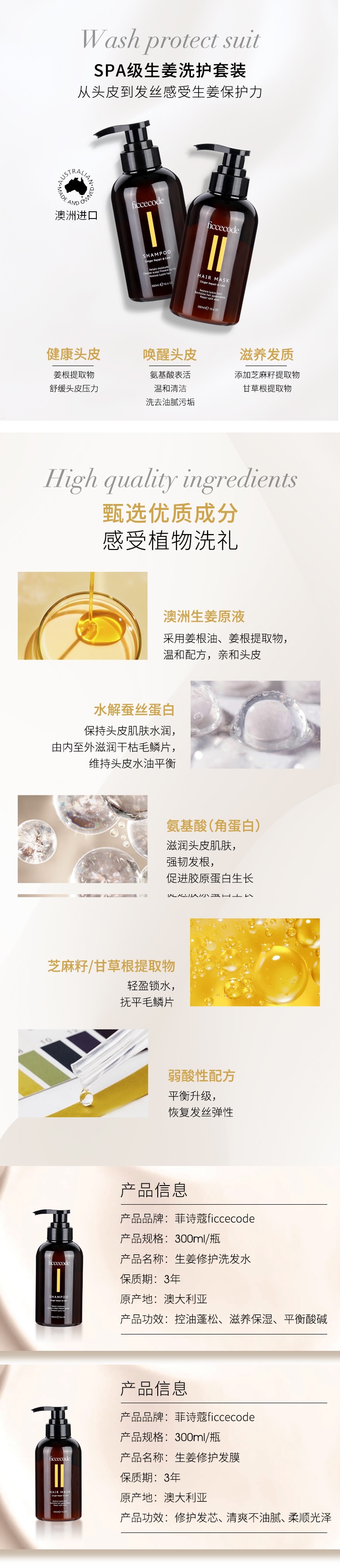 FicceCode 菲诗蔻生姜洗发水 深层清洁 强健发丝洗发水300ml