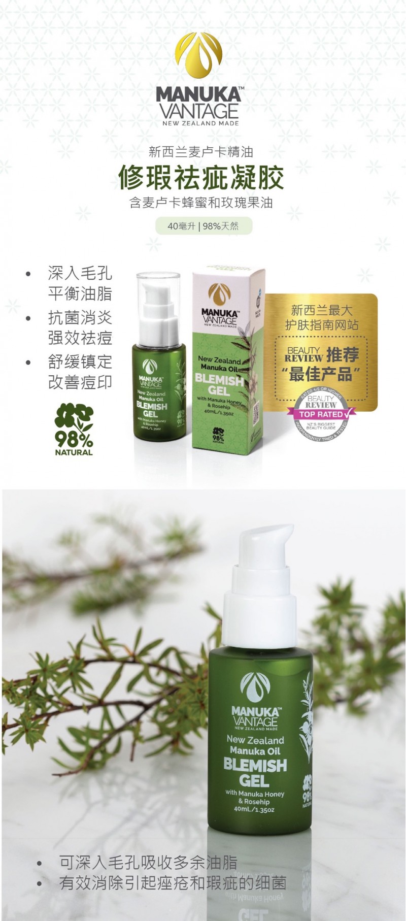 - 英文名称Parrs Manuka Vantage Manuka Oil Blemish Gel 40ml