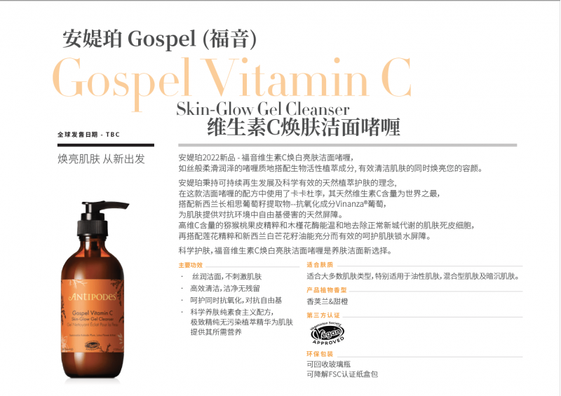 - 英文名称Antipodes Gospel VC Skin-Glow Gel Cleanser 200ml