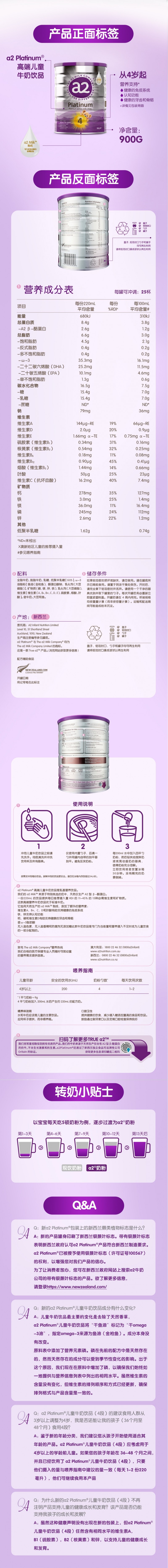 【新西兰直邮包邮:顺丰发货】A2白金婴儿奶粉 4 段 6罐/箱(保质期至 2026年12月)