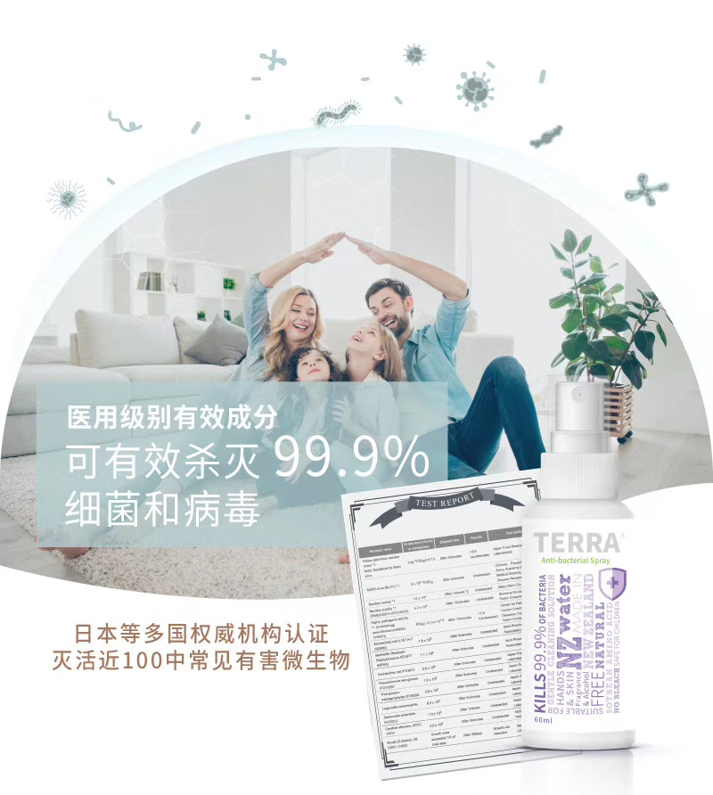 - 英文名称Terra Anti-bacterial Spray 60ml