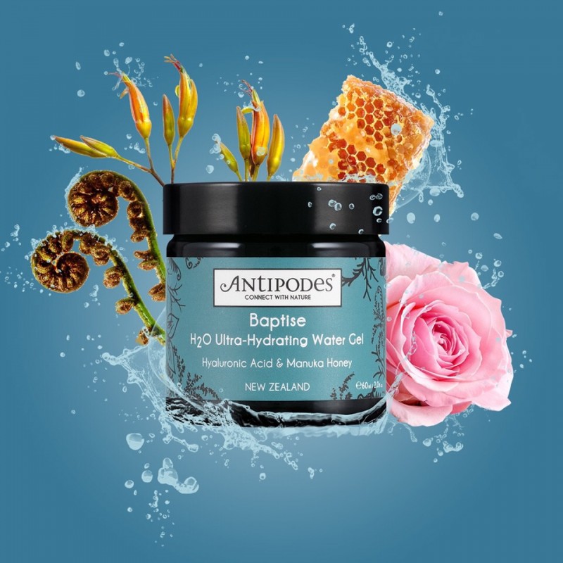Antipodes Baptise H20超保湿水凝胶配方使用两种突破性的天然保湿剂将水吸引到皮肤上。