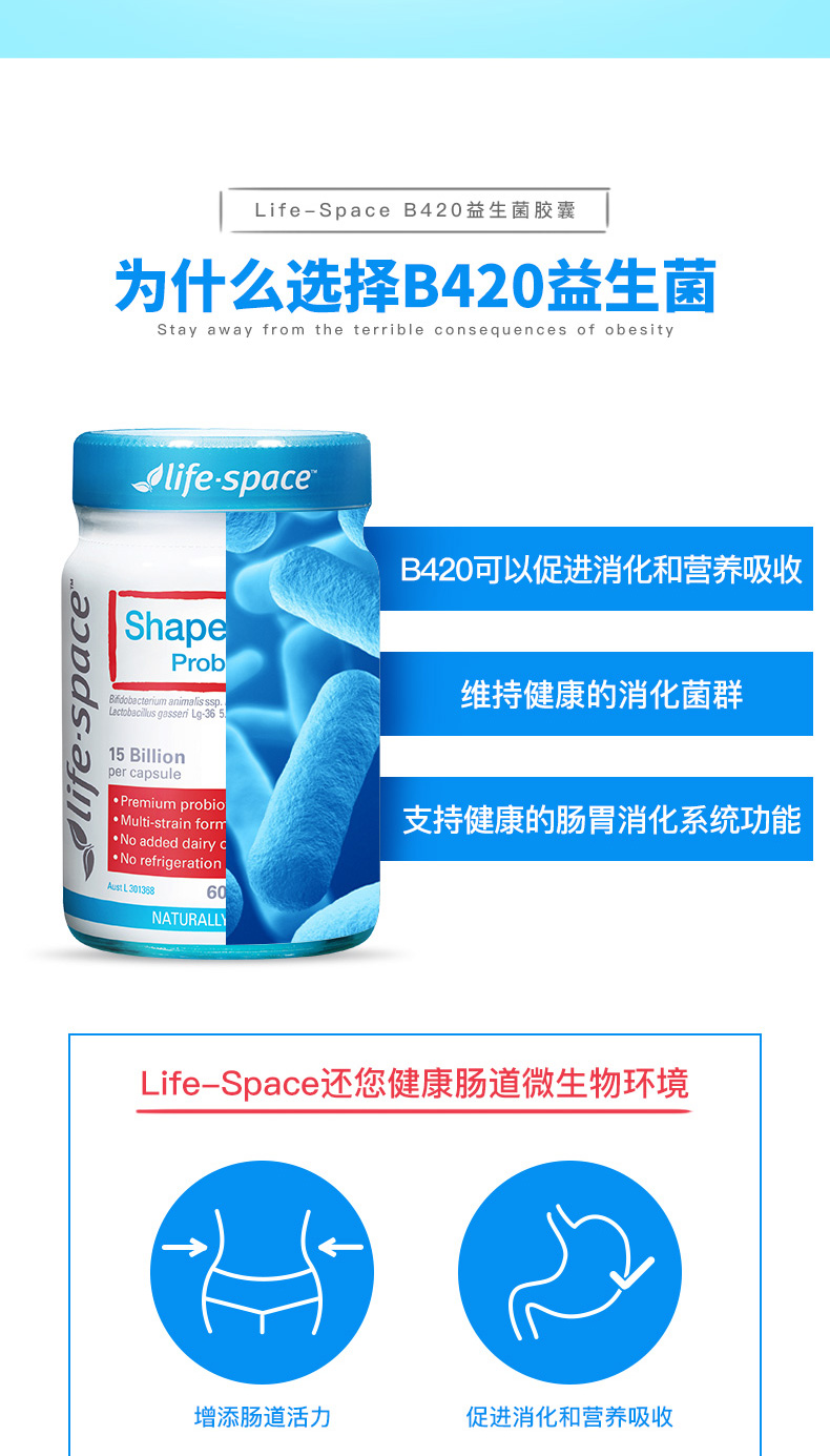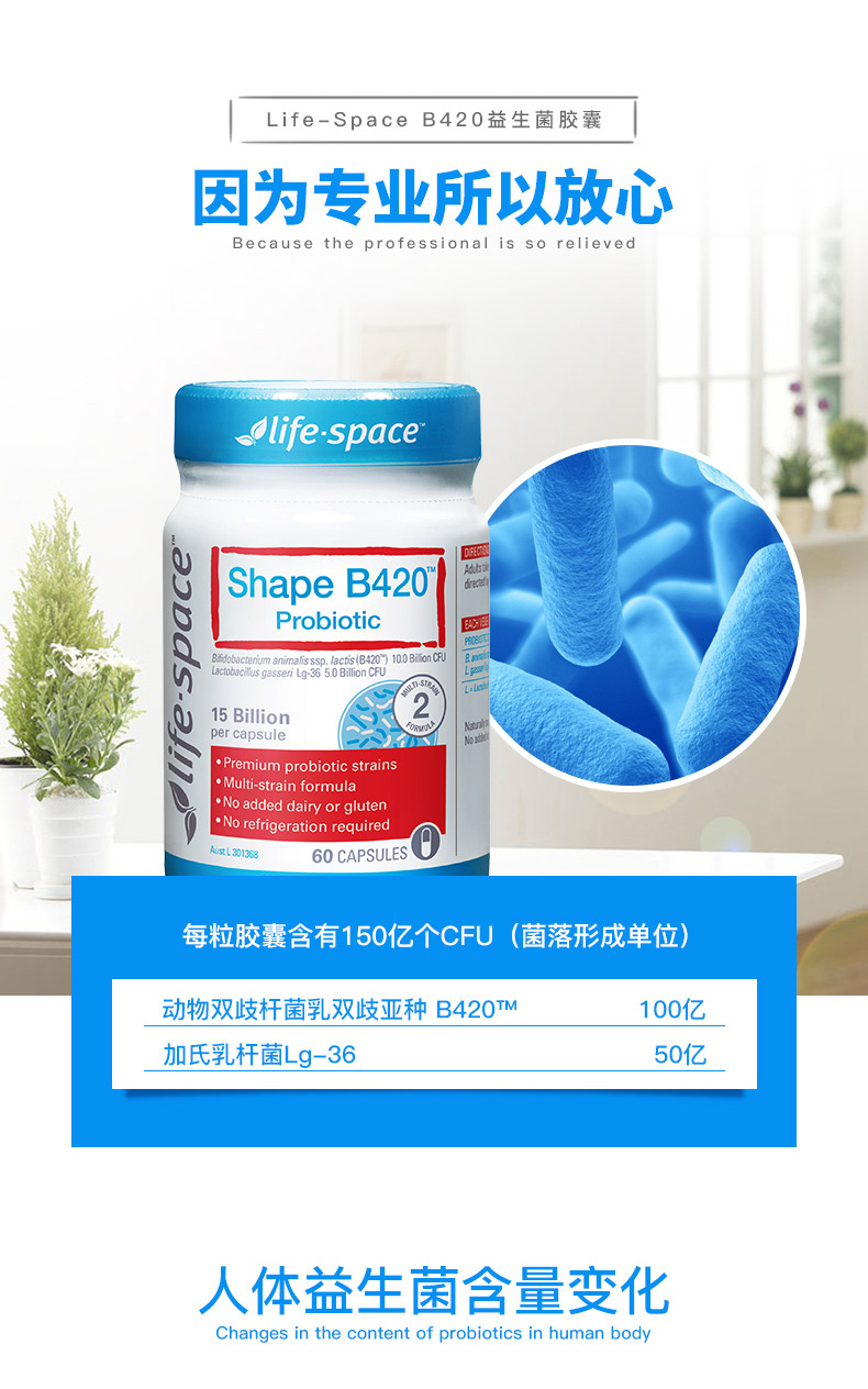 - 英文名称Life Space Shape B420 Probiotic 60c
