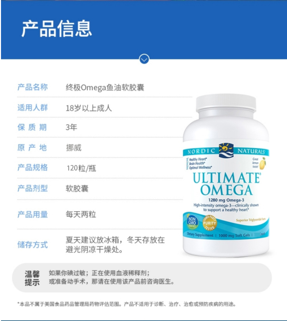 Nordic natural挪威小鱼 终极OMEGA柠檬味鱼油胶囊120粒