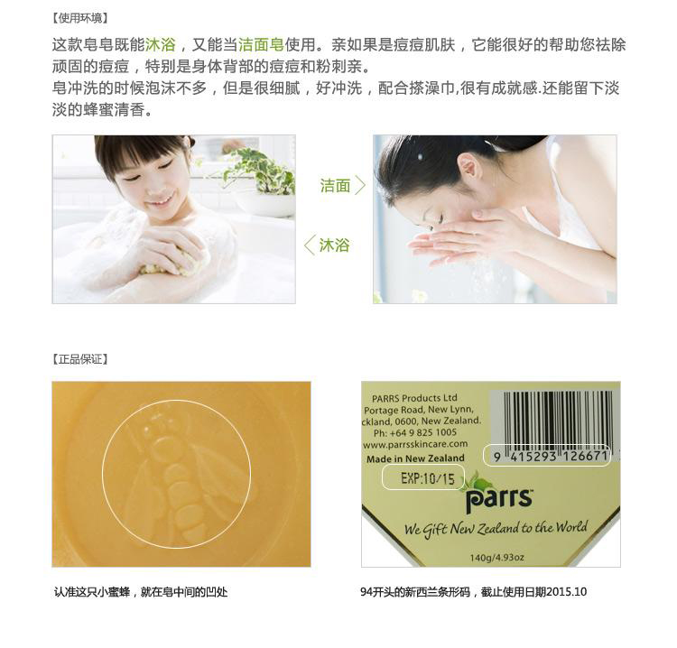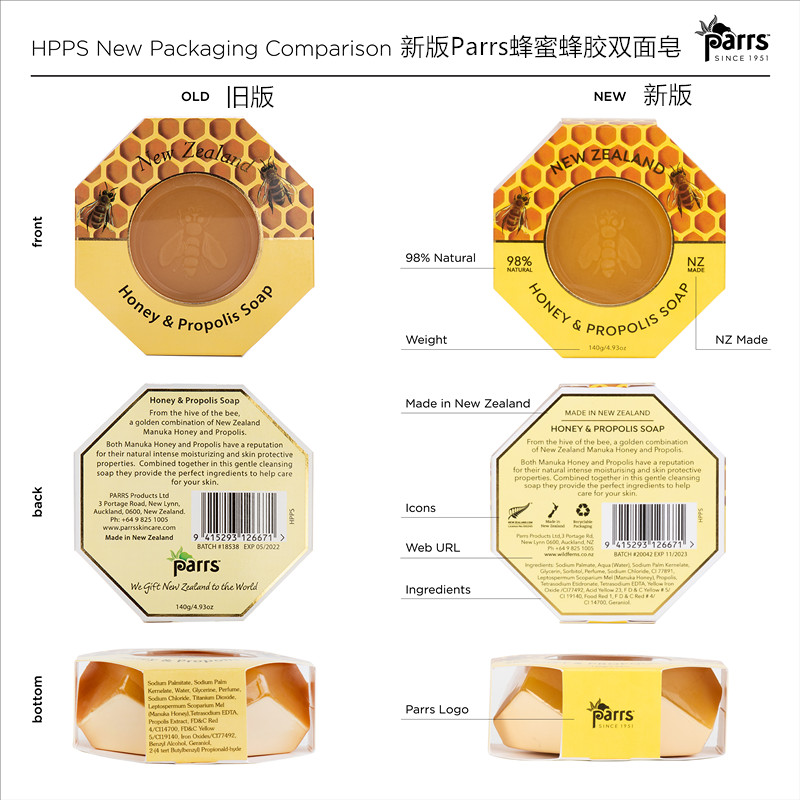 - 英文名称Parrs Soap Honey & Propolis 140g