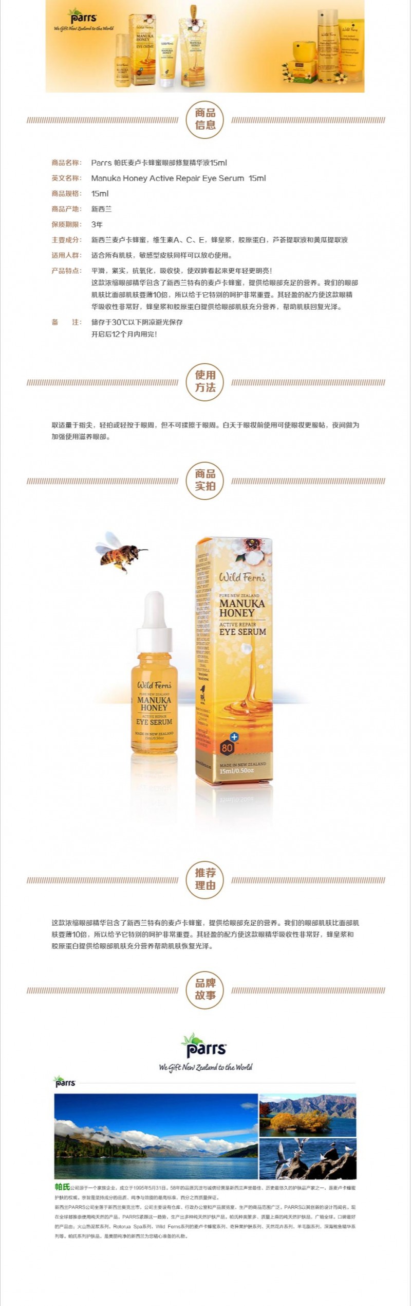 - 英文名称Parrs Manuka Honey Active Repair Eye Serum 15ml