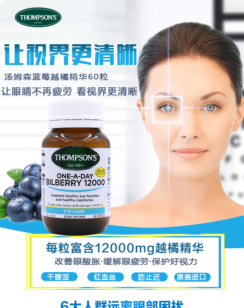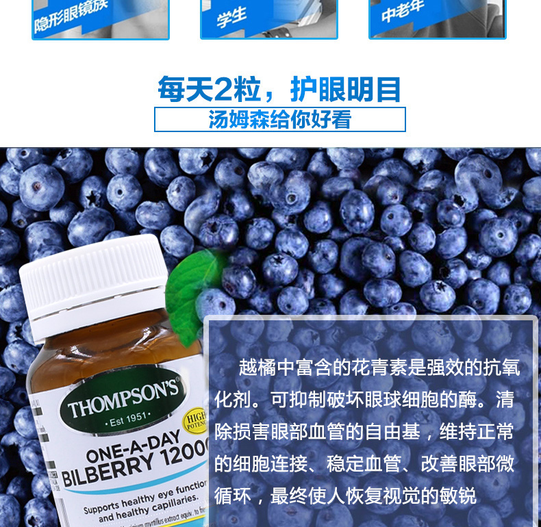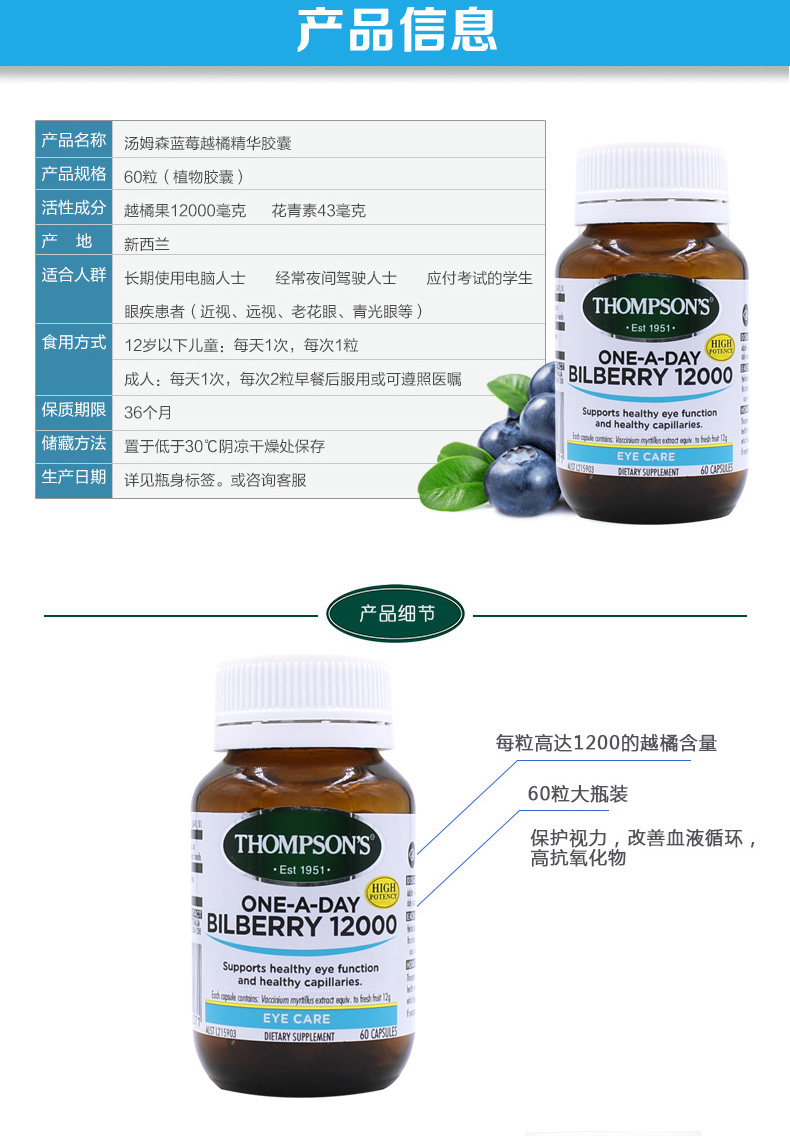 Thompson 汤普森蓝莓越橘护眼精华 60粒