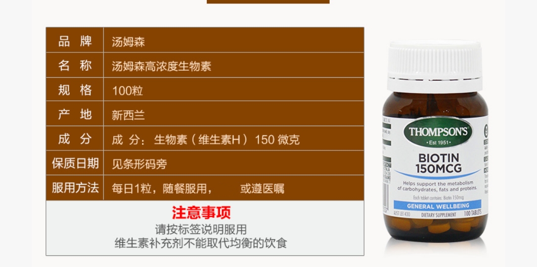 Thompson‘s 汤普森 防脱发生物素 100片
